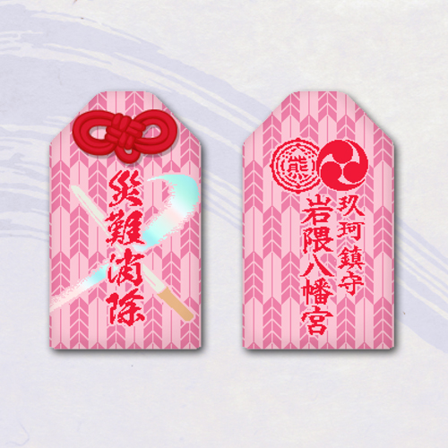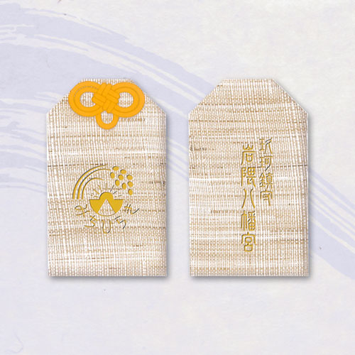 当社の御祭神、殊に磐余彦神(神武天皇)・誉田別尊(応神天皇)・住吉三神の開拓・発展・導きの御神徳や、国作り・国譲りを行われた大己貴命(大国主命)、災難禍を祓う須左之男命をはじめとする神々の、人世さまざまに混沌としている旅路を、明るく正しく照らし育成し、人生の繁栄や事業の隆昌、行く末に亘る御神威をお授かりになります様、古来より穢れを祓うと云われ、神事の際にも広く使われている麻生地を用いて奉製致しております。