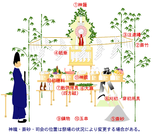 施主及施工者が初めてその土地に手をつけることを神前に奉告する儀式。