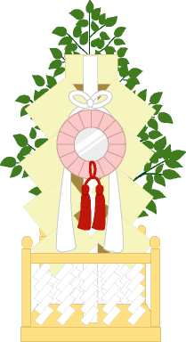 榊に紙垂(しで)や鏡、麻をつけたもので、お祭りにあたりお降り願う神霊の依代(よりしろ)として設ける。