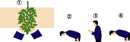 1)神職から玉串を受け取り、神前の玉串案(台)の所まで進み玉串を持ったまま一礼をする。